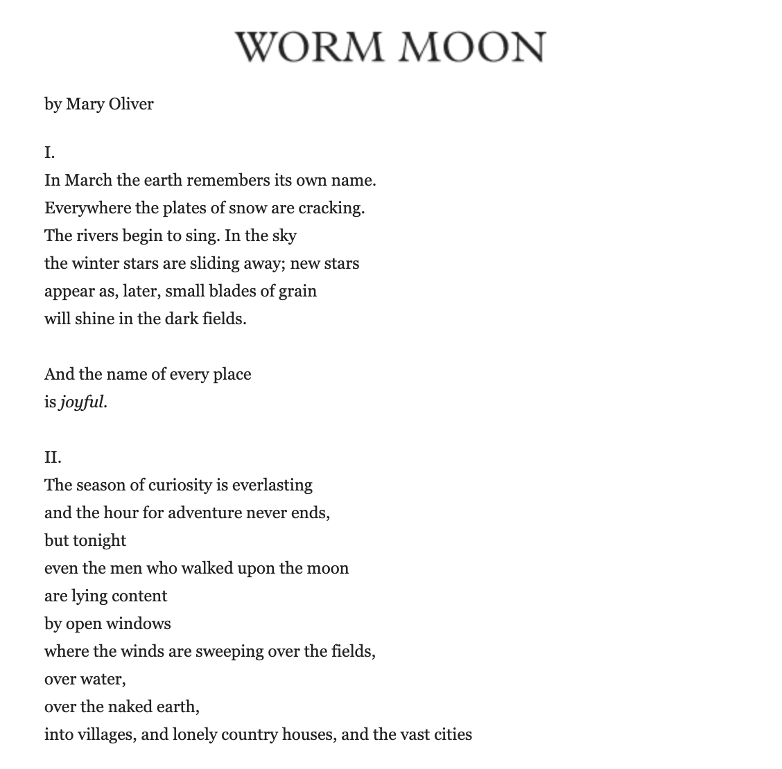 For inspiration, here is a curated list of Mary Oliver poems about the moon:
