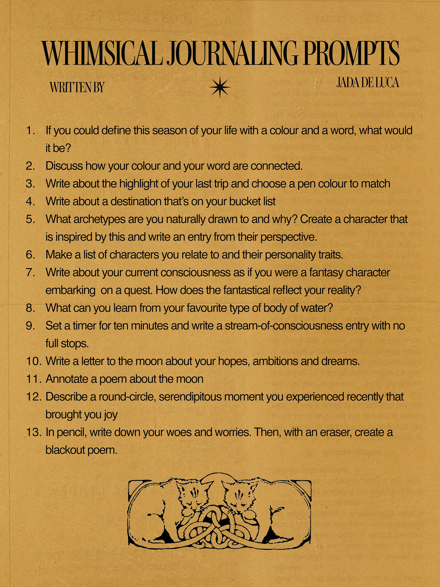 This is such a luxurious and playful prompt list. It is so rich with literary contexts and the moon prompt spoke directly to my soul. Thank you so much for this journaling treasure!